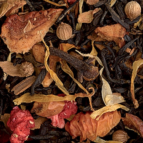Состав: чай черный (Индия), яблоко, корица, гвоздика, натуральный ароматизатор, кориандр, клубника, лепестки календулы.